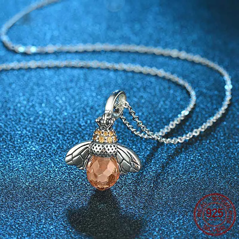 TONGZHE 925 Sterling Silver Necklace Women Orange Honey Bee Animal Charm Choker Necklaces Pendants
