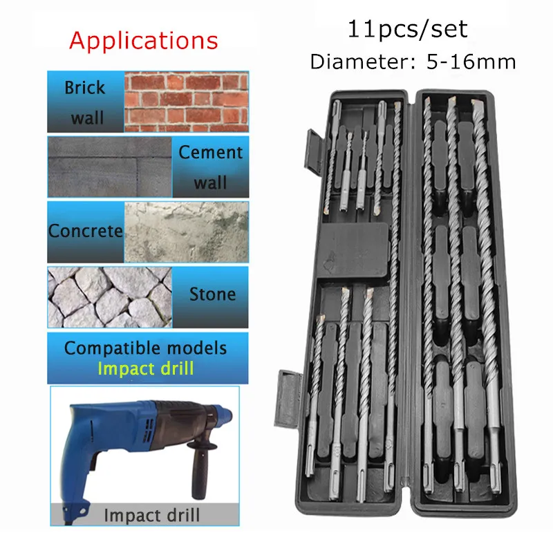11pcs Carbide Electric Drill Bits For Concrete Stone Impact Metal Drill Bit Round Grip Drills Bit S